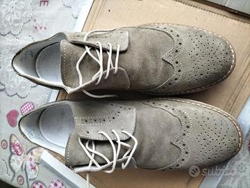 scarpe marca Fusaro in pelle scamosciata beige, modello Oxford, in ottime condizioni, leggere e fresche utilizzate un paio di volte. Misura 44 ma calzano anche 43 comodo