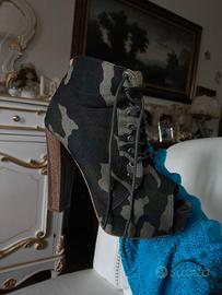 Fantasia militare. Tacco 12 e plateau. In tessuto e legno. Tenute bene. Disponibile per consegna di persona su alcune distanze, da accordare