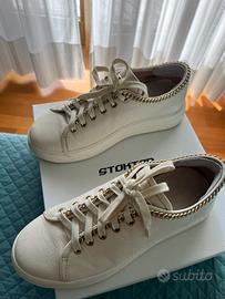 Vendo sneakers Stokton donna, num. 40, usate pochissimo per acquisto errato (vestibilità grande). Prezzo di listino 235€.