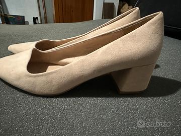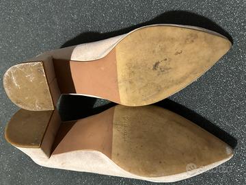 Come da foto paio di scarpe con tacco basso e largo, brand Stradivarius, numero 39, colore rosa albicocca. Usate ma in buono stato.