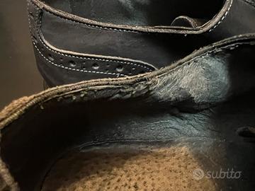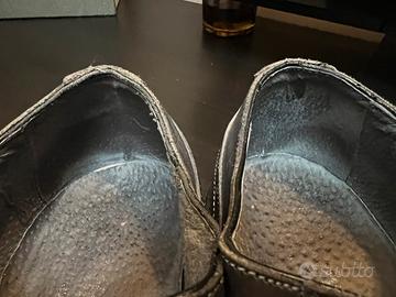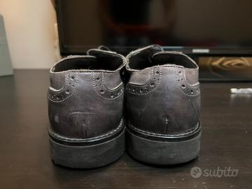 Bellissime scarpe stringate prodotte in Italia, modello Derby, in colore grigio, misura 43. Usate, ma ancora sfruttabilissime. Presentano qualche segno di usura nella parte posteriore interna, visibili nelle ultime due foto dell’annuncio, ma una volta indossate non si notano.