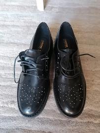 Vendo Scarpe nere, con applicazioni in metallo, n. 40, marca Geox. Mai utilizzate. Molto comode, si abbinano facilmente a qualsiasi tipo di abbigliamento.