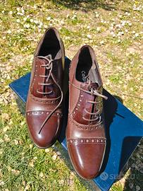scarpe sono delle francesine Liujo da donna in pelle marrone con tacco 5cm e decorazioni brogue, in stile vintage.N.38.Molto comode.Nuovo con scartola