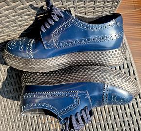 Scarpe stringate eleganti blu da cerimonia con suola rialzata in gomma Emporio Armani original size 6.
