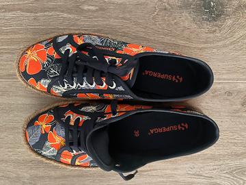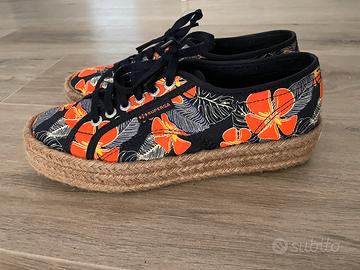 Superga iconica con zeppa alta 3 cm rifinita in corda intrecciata