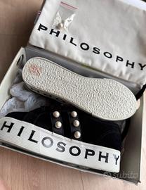 Bellissimo modello in velluto nero con perle decorative e logo PHILOSOPHY.