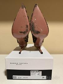 Come da titolo vendo scarpe con tacco con tomaia animalier e interno in pelle. Utilizzate solo per una serata. Profumano ancora di nuovo! Pagate 279€ come si puo vedere in foto.