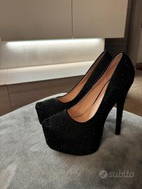 Vendo décolleté numero 39 brand Via Giulia. Modello platform altissimo interamente tempestato di brillantini/strass neri su base in raso.