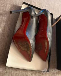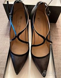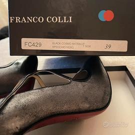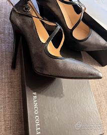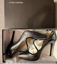 Frsnco Colli . Bellissime scarpe con un tacco alto 12cm con il centurino davanti. Vera pelle, Made in italy. La suola è rossa, un po' consumata, il tacco è perfetto. Per le uscite serali o cene importanti. Colore nero/silver/ griggio . spedizione rapida Il venditore dichiara che il bene oggetto del presente annuncio è originale.