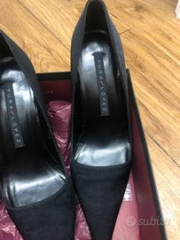 Vendo scarpe décolleté in tessuto nere a punta numero 37.5 usate solo una volta per una cerimonia al chiuso. Marca spagnola Pura Lopez. Tacco altezza 9 cm. Non spedisco e no feticisti. Ritiro Roma centro