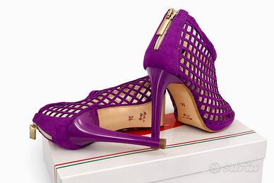 Modello elegante traforato a rete con punta aperta e zip posteriore.