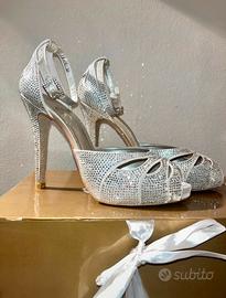 Décolleté donna ricoperto di strass , indossato solamente una volta, comodo, fatto a mano , tacco 10 cm