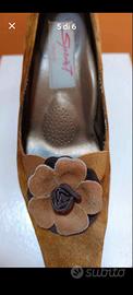 Scarpe donna con tacco in camoscio Vetn. cuoio Plantare ergonomico Comodissime
