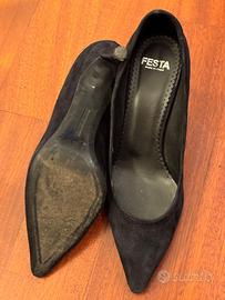 Scarpe con tacco. Materiale scamosciato, vera pelle, pari al nuovo, utilizzate solamente una volta. Marca Festa, made in Italy, misura 38. Prive di scatola ma come nuove