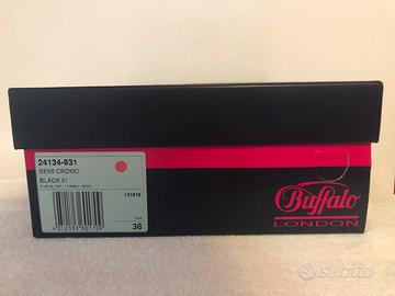 Scarpe Buffalo London, tacco blu elettrico 13 cm, nere con borchie bianche. Mai indossate. Misura 38.