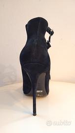 Scarpe con tre laccetti e tacco alto 11 cm, in scamosciato nero, marca Schutz, numero 37 scarso. Usate 2 volte.