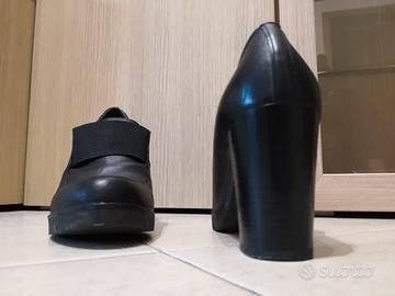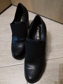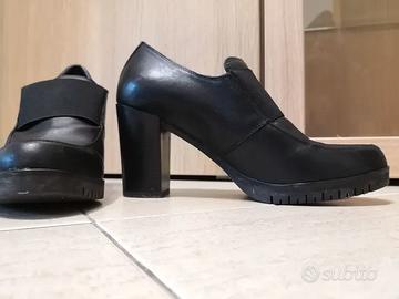 Scarpe nere Grundland con tacco largo 8,5cm e leggero plateau. Slips in in vera pelle e suola in gomma.