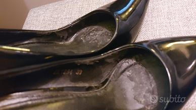 Vendo scarpe a punta nero lucido n 39. Le scarpe si presentano discretamente usurate all'interno, ma la pelle in vernice nera è perfettamente integra