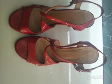 Scarpe SUR rosse lucide , comodissime numero 39, tacco 7, suola in cuoio.