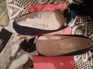 scarpe Décolleté con plateau,tacco 6 cm. zeppa 1,5 cm. colore blu e grigio numero 36