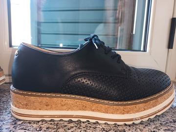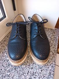 Vendo scarpe Tata stringate nere con platform in sughero di circa 4 cm. Tomaia traforata ma chiusa davanti e nei laterali. N. 38