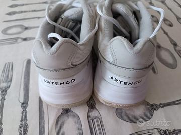 scarpe tennis Decathlon Artengo n. 40 in ottimo stato, lavate in lavatrice, con soletta nuova mai usata. Segnalo che la suola è leggermente consumata nella parte posteriore (vedere quinta foto). Prezzo di acquisto nuove in negozio € 29,99 + 4,99€ spedizione