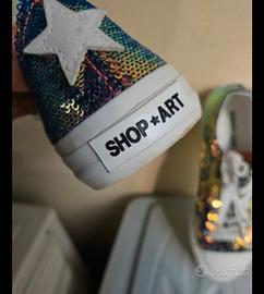 scarpe tennis modello tipo all star, tutte con pailletes cangianti, indossate una sola volta.