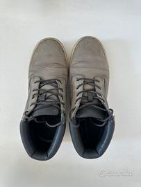 Stivaletti da uomo in pelle e camoscio, suola in gomma, marca Timberland, ovviamente originali, comprati in boutique a Caserta, Italia. Ottime condizioni, colore grigio. Numero 40, non presente la scatola. In pratica ve li sto dando in regalo, avendoli pagati oltre 100 euro ed usati poco. tags: stivali, scarpette, scarponi, scarponcini, pelle, nabuk, gomma, montagna, trekking, passeggio, ragazzo, donna, unisex