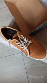 Scarpe sneakers Timberland 100% originali, camoscio morbido, vestibilità ottima, taglia italiana 41, usate pochissime volte, in stato ottimale come si vede dalle foto allegate. Presentano la scatola originale:)