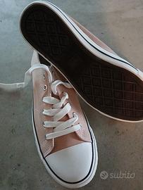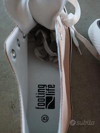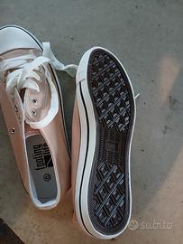 Vendo un paio di scarpe da ginnastica tipo "Converse", marca FootingLife, colore beige, numero 43. Sono nuove, mai usate. In scatola originale