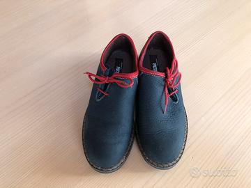 Scarpe tirolesi n. 36 (originali tedesche) blu con particolari rossi, in vera pelle ed in ottimo stato.