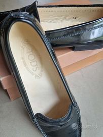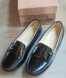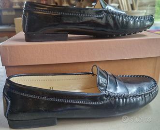 Scarpe Tod’s mocassini in vernice nera. Usate solo 1 sera per numero errato.