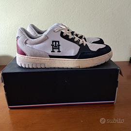 Vendo scarpe Tommy Hilfiger Basket White E23, numero 42, in ottimo stato. Usate davvero poco, presentano minimi segni di utilizzo e sono complete di scatola originale.