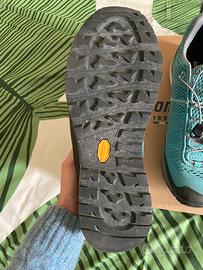 Vendo per acquisto taglia errata. Indossate pochissimo, in perfette condizioni. Scarpa ideale per escursioni, stabile e ben ammortizzata. Suola esterna vibram (vedi foto). Ancora in possesso di scatola originale. Scarpa unisex, taglia 40 2/3.