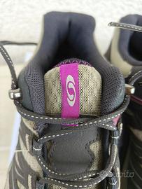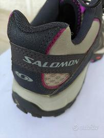 Scarpe trekking Salomon beige/grigie ideali per escursioni. - Tomaia in tessuto traspirante. - Suola robusta per un buon grip. - Design sportivo e funzionale.Stato come nuovo
