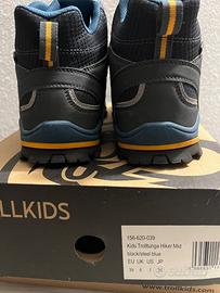 Scarponcini da trekking da ragazzo Trollkids originali, colore blu e grigio come da foto, misura 39. Articolo come nuovo, senza segni di utilizzo, usato 1 sola volta e in perfetto stato. Completo di scatola originale.