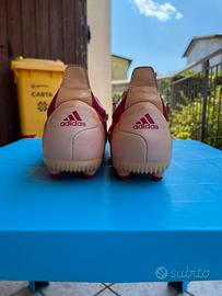 Scarpe Adidas rosse e arancioni con tacchetti da calcio/rugby numero 48,5 in buone canzoni.