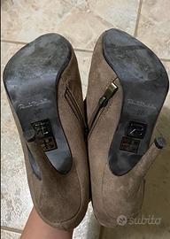 Buona vestibilità. Indossate solo in un paio di occasioni. Come nuove. Inclusa nel prezzo scatola originale. Tappini sostitutivi del tacco inclusi. Tacco 12 cm. Color fango