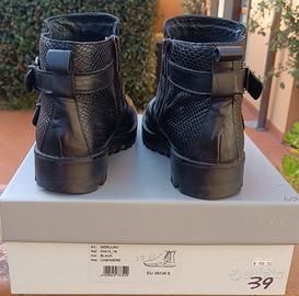 Scarpe tronchetto in pelle igi&co, colore nero, taglia 39, usate ma ancora in buone condizioni come si vede dalla suola “grip” che è perfetta. Vendo perché non le calzo più bene.