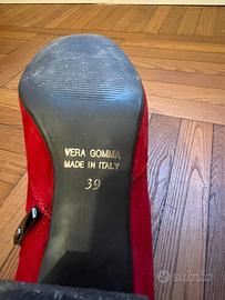 Scarpe/Tronchetto in vera pelle scamosciata a punta tonda color rosso con cerniera. Tacco largo e comodo. Fabbricate in italia. scarpe pari al nuovo mai usate. Altezza tacco 5.5 cm