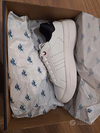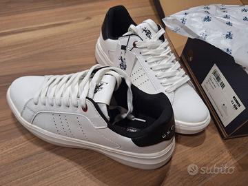 Scarpe Polo n.42, nuove ed originali, indossate una volta e non più messe per regalo non gradito. Colore bianco-nero (nota bene modello ricercato per non grafica ai lati), molto leggere, ottima qualità e ottimo affare. Preferisco scambio a mano.