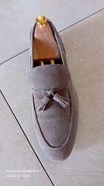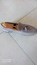 usati massimo tre volte, mocassino n.43 da uomo con fiocchetti in nappa color taupe