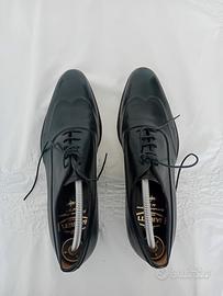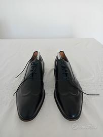 Vendo eleganti scarpe da uomo marca Barrett, modello derby con lacci, realizzate in pregiata pelle nera. Taglia 8 corrisponde 42 / 42,5 italiana Design classico e raffinato, perfetto per occasioni formali, lavoro o outfit eleganti. Le scarpe sono in ottime condizioni generali, ben conservate e poco utilizzate. La pelle è in ottimo stato, senza difetti rilevanti. L’unico segno di utilizzo riguarda la suola leggermente consumata, ma questo non compromette assolutamente la comodità o l’utilizzo della scarpa. Calzatura di alta qualità, solida e molto elegante, ideale per chi cerca un prodotto di marca a un prezzo conveniente.