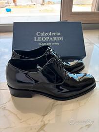 Acquistate e mai utilizzate. Scarpe di lusso prodotte a mano, pelle di vitello e vero cuoio, con certificato di autenticità. Presentano un rialzo interno che, insieme al tacco, garantisce un aumento di altezza totale di 7 cm. Perfette per cerimonia o per sposo.