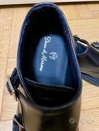 Scarpe nuove uomo mai indossate, marca Duca di Morrone, made in Italy , vera pelle ,nere, numero 44, suola gomma. In vendita per sbaglio numero. Modello particolare con allacciatura tramite due cinghiette sul lato.