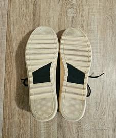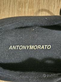 Scarpe uomo Antony Morato, modello Hardy. Numero 42. Tomaia in tessuto nero con lacci anch'essi neri, suola/gomma beige a contrasto con la parte superiore. Sul tallone è presente il logo del brand e ha la punta rinforzata dello stesso materiale della suola. È un modello casual e versatile che si adatta a jeans, ma anche per un evento più formale. Indossate solamente un paio di volte, vendo per inutilizzo.