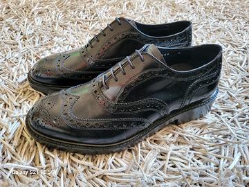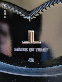 scarpe classiche da uomo modello derby in pelle vernice nero con suola in vero cuoio numero 40 prodotto in Italia