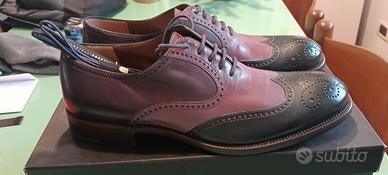 Eleganti scarpe stringate da uomo Fratelli Rossetti. - Design bicolore con finiture brogue. - Lacci scuri. - Suola in cuoio. Taglia 6 e mezzo