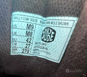 Causa errore di taglia, vendo scarpe in pelle scamosciata marrone Hey dude! n 42.