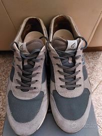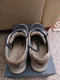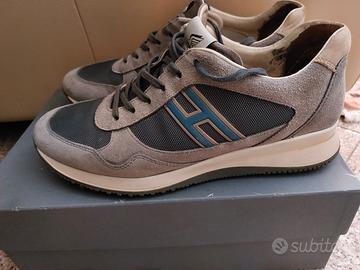 Scarpe uomo Hogan numero 42.5 (8.5), vestibilità 43.5. All'interno presentano segni di usura, esternamente sono in buone condizioni. Colori: bianco, grigio e azzurro. Dotate di scatolo e sacchetto originali.